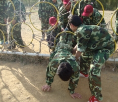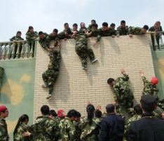 畢業(yè)墻:每個(gè)人都要翻越一堵大約4米且垂直的圍墻,這又是一個(gè)必須依靠集體的力量才能完成的項(xiàng)目。剛開始,大家都認(rèn)為這是很難完成而且比較危險(xiǎn)的任務(wù),估計(jì)需要半個(gè)小時(shí),甚至一個(gè)小時(shí)才能全部通過(guò)。 通過(guò)集思廣益,我們擬定了計(jì)劃,采用“疊人墻”的方法,讓身強(qiáng)力壯的隊(duì)員作為底座,先由兩三位隊(duì)員踩在他們的肩膀,大家奮力將他們先托上高墻,然后他們?cè)谏厦娼討?yīng),其他同伴踩著底座同伴的肩膀,一個(gè)一個(gè)成功地翻越了高墻。整個(gè)過(guò)程歷時(shí)不過(guò)5分鐘,活動(dòng)結(jié)束后,所有隊(duì)員都為自己和團(tuán)隊(duì)的精彩表現(xiàn)鼓掌、歡呼,那一刻的場(chǎng)面激動(dòng)人心! 此項(xiàng)目心得體會(huì):首先要感謝作為底座的幾位隊(duì)友,十幾個(gè)同伴踩在他們的肩膀上,汗水、沙土粘滿了衣服,肩膀被踩出紅紅的血痕。他們的奉獻(xiàn)和付出,換來(lái)了團(tuán)隊(duì)的成功。無(wú)論在工作還是生活中,只有放下自私、愿意付出、為別人著想、才能成就自己,完成目標(biāo)。